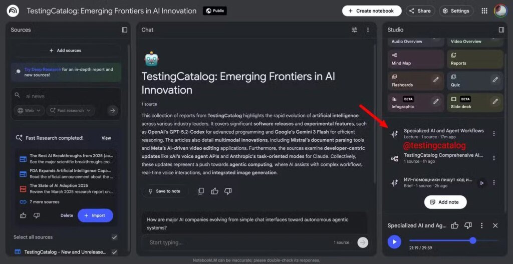 كما رصدها المتسرب لأول مرة @TestingCatalog، تعمل Google على تنسيق “محاضرة” لميزة “النظرات العامة الصوتية”. استنادًا إلى العرض التوضيحي لكيفية عمل الميزة، من الواضح أن وضع “المحاضرة” الجديد سيكون متاحًا جنبًا إلى جنب مع أوضاع الغوص العميق والموجز والنقد والمناقشة في النظرات العامة الصوتية.