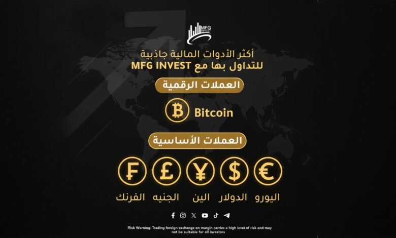 وتوفر MFG INVEST إمكانية التداول في العملات الرقمية وعلى رأسها Bitcoin، التي تُعد من أكثر الأصول الرقمية تداولًا على مستوى العالم، لما تتمتع به من سيولة عالية وتأثير مباشر في حركة الأسواق المالية العالمية.