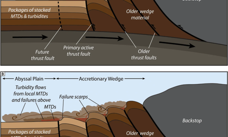 وقالت: “نعتقد أنها تحدث في أغلب الأحيان في كل مكان على طول مناطق الاندساس، لذلك يجب أن نكون قادرين على العثور على رواسب الانهيارات الأرضية والتعكرات البحرية على مستوى العالم في أماكن لم نبحث عنها من قبل من قبل”.